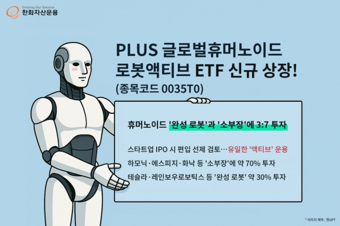 한화자산운용이 완성 로봇부터 소·부·장(소재·부품·장비)까지 글로벌 휴머노이드 로봇 산업 전반에 투자할 수 있는 신규 ETF(상장지수펀드) 상품을 선보였다. 한화자산운용은 15일 PLUS 글로벌휴머노이드로봇액티브 ETF를 신규 상장했다. 포트폴리오는 한국·미국·일본 등 글로벌 기업으로 구성됐다. 비중은 완성 로봇 기업이 30%, 핵심 소·부·장 기업에 70%다. 한화자산운용 관계자는 "휴머노이드 로봇 제작 비용을 약 5만달러로 가정할 때, 핵심 부품인 액추에이터와 센서 비용이 약 3만3000달러로 원가의 66%를 ...