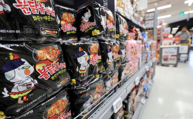 황제주 등극을 앞둔 삼양식품이 24일 코스피 시장에서 상승 중이다. 장 중 95만원을 터치했다. 불닭볶음면이 해외 돌풍을 일으키며 주가 부담과 미국 관세 정책 우려도 상쇄 중이다. 증권사들은 잇달아 삼양식품의 목표주가를 100만원 이상으로 올리고 있다. 이날 오전 10시43분 현재 삼양식품은 전날 대비 1만6000원(1.73%) 오른 94만2000원에 거래 중이다. 지난해 4월24일 29만원에 불과했던 삼양식품 주가는 1년 새 224.83% 올랐다. 올해 들어서만 23.14% 급등했다. 삼양식품 주가 급등의 원인은 불닭볶음면...