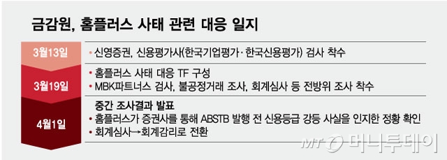 금융감독원이 발견한 홈플러스와 MBK파트너스(이하 MBK)의 해명과 상반되는 정황은 사측이 신용평가등급이 낮아질 가능성을 인지한 시점에 대한 것이다. 신용평가등급이 낮아진 후 기업회생절차(법정관리) 신청을 준비했다는 사측의 주장과 달리 자산유동화 전자단기사채(ABSTB) 판매 이전에 신용등급이 떨어질 것을 알았음을 추정할 수 있는 내용으로 알려졌다. 1일 금감원 자본시장 현안 브리핑은 홈플러스 사태 중간조사 결과인 만큼 어떤 경로로 파악했는지 구체적 설명은 없지만 추측은 가능하다. 이를테면 기업회생 신청 준비 과정에서 법률사무소...