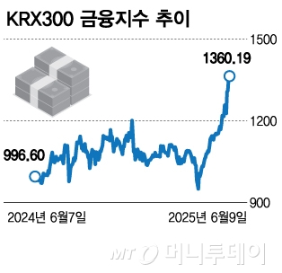정부주도 증시부양책인 기업 밸류업 프로그램(이하 밸류업) 시행이 1년을 넘겼다. 성과 여부에 대한 다양한 의견들이 제시되는 가운데, 글로벌 경제 환경에서 다소 자유로운 저 PBR(주가순자산비율) 내수주들의 성적은 1년전과 비교해 개선된 것으로 나타났다. 하반기 내수주 투심 자극 재료들이 기다리고 있어 우위 환경이 지속될 수 있다는 분석이다. 9일 한국거래소(KRX) 코스피에서 4대 금융지주와 삼성생명·화재, 메리츠금융지주, 기업은행 등을 묶은 KRX 300 금융 지수는 1360.19로 1년전인 2024년 6월7일 996.50과 ...