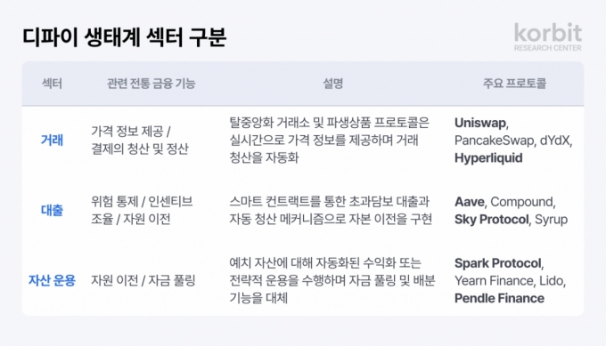 국내 가상자산 거래소 코빗 산하 코빗 리서치센터는 탈중앙화 금융(디파이) 산업의 구조적 변화와 규제 환경을 종합 분석한 보고서 '다시 쓰는 디파이 지도'를 발간했다고 24일 밝혔다. 이번 보고서는 디파이의 개념과 역사, 주요 서비스 구조를 체계적으로 정리하고 거래·대출·자산운용의 3가지 섹터별 기술 구조와 운영 전략을 심층 분석했다. 최근 규제 환경 변화가 디파이 생태계 전반에 어떤 영향을 미치고 있는지도 함께 조명했다. 디파이는 블록체인 기반 기술을 활용해 중개기관 없이 사용자가 직접 금융 활동에 참여할 수 있도록 설계된 개방...