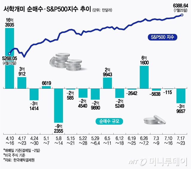 미국 증시가 사상최고가 행진을 이어가고 있는 가운데 서학개미들이 두달여만에 최대 주간 순매도를 나타냈다. 다만 순매도 대부분이 지난 23일 실적을 발표한 테슬라에 집중된 점은 주목된다. 반면 서학개미들의 순매수 상당 부분은 암호화폐 관련 종목과 ETF(상장지수펀드 )로 몰렸고 일부 단기 급락 종목에 저가 매수세가 유입됐다. 개별 종목들의 주가가 너무 올라 추가 매수가 부담스러운 상황으로 보인다. 서학개미들은 지난 17~23일(결제일 기준 21~25일) 사이에 미국 증시에서 4억달러에 가까운 3억9657만달러를 순매도했다. ...