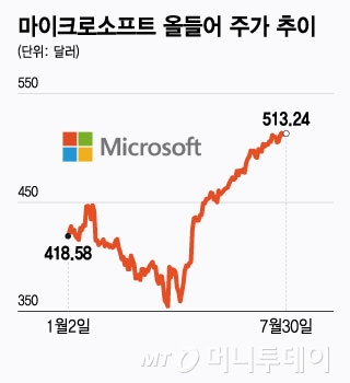 마이크로소프트(MS)가 30일(현지시간) 장 마감 후 예상을 뛰어넘는 분기 실적과 강력한 향후 전망을 발표하면서 시간외거래에서 주가가 8% 이상 급등하고 있다. 이에 따라 마이크로소프트도 엔비디아에 이어 시가총액 4조달러 달성이 가시권에 들어왔다. 마이크로소프트는 이날 장 마감 후 2025 회계연도 4분기(올 4~6월) 주당순이익(EPS)이 3.65달러로 집계됐다고 밝혔다. 이는 LSEG가 조사한 애널리스트들의 전망치 3.37달러를 웃도는 것이다. 전체 순이익은 272억3000만달러로 전년 동기 220억4000만달러 대비 ...
