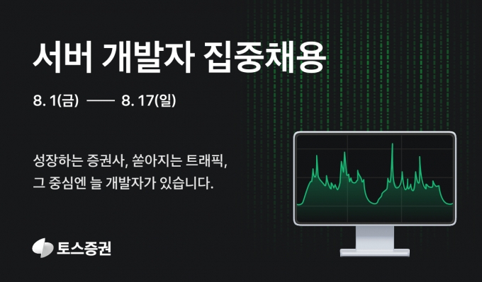 토스증권은 오는 17일까지 서버 개발자 집중 채용에 나선다고 1일 밝혔다. 이번 채용은 두 자릿수 규모로 진행되며, 서버 개발 경력 만 3년 이상의 개발자를 대상으로 한다. 이번에 합류하는 개발자는 토스증권의 주요 서비스와 내부 시스템 등 백엔드 개발이 필요한 조직에 소속돼 개발과 운영 전반을 담당하게 된다. 지원은 토스커뮤니티 채용 페이지에서 할 수 있다. 지원자는 서류 전형, 라이브 코딩 테스트, 직무 인터뷰, 문화 적합성 인터뷰, 레퍼런스 체크 등을 거친다. 토스증권 관계자는 "토스증권의 다양한 신규 서비...