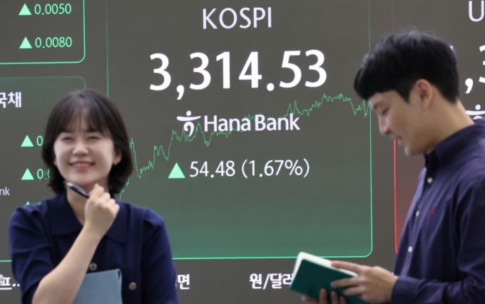 코스피지수가 4년 2개월만에 역사상 최고점을 새로 썼다. 올해 들어 코스피는 38% 상승해 주요국 증시 가운데 가장 우수한 성과를 내고 있다. 10일 코스피는 전 거래일 대비 54.48포인트(1.67%) 오른 3314.53에 거래를 마쳤다. 종가 기준으로 2021년 7월 6일 기록한 직전 최고치 3305.21을 넘어섰다. 장중 기준으로는 3317.77까지 올라 2021년 6월25일 최고점 3316.08도 넘어섰다. 시가총액도 사상 최대인 2727조원까지 불어나 2021년 7월6일 대비 410조원 넘게 증가했다. 외국인과 기관투자자...