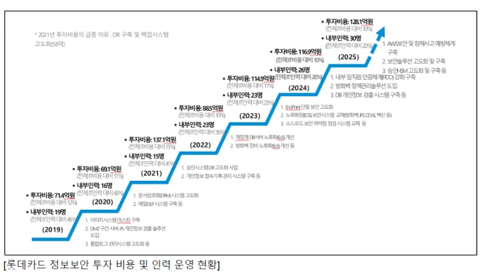 대규모 해킹사고가 발생한 롯데카드와 관련 대주주인 MBK파트너스가 인수 이후 보안투자를 소홀히 한 것 아니냐는 비판에 대해 사실이 아니라고 해명했다. 보안투자 비용은 2019년 71억원에서 올해 128억원으로 꾸준히 확대해왔다는 설명이다. MBK는 21일 설명문을 내고 "일각에서 사이버 침해 사고의 원인을 주주사들의 보안 투자·관리 소홀로 지적하고 있으나 이는 사실과 다르다"며 "롯데카드는 매년 정보보안·IT 투자를 꾸준히 확대해왔다"고 말했다. MBK에 따르면 롯데카드의 보안투자 비용은 20...
